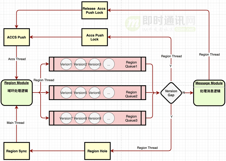 如上图所示是,模型中存在ACCS Thread/Main Thread/Region Thread等多线程并发场景,导致易出现多线程高并发的问题。
