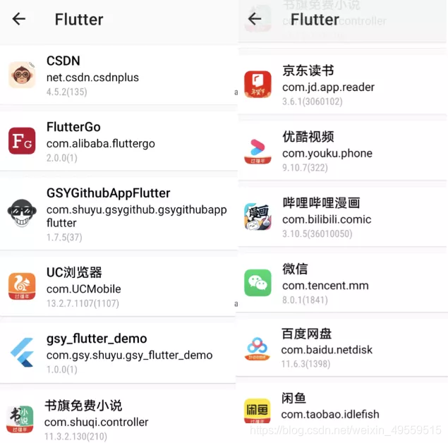如下图,这是手机上用 libChecker 统计出来的部分使用 Flutter 的应用: