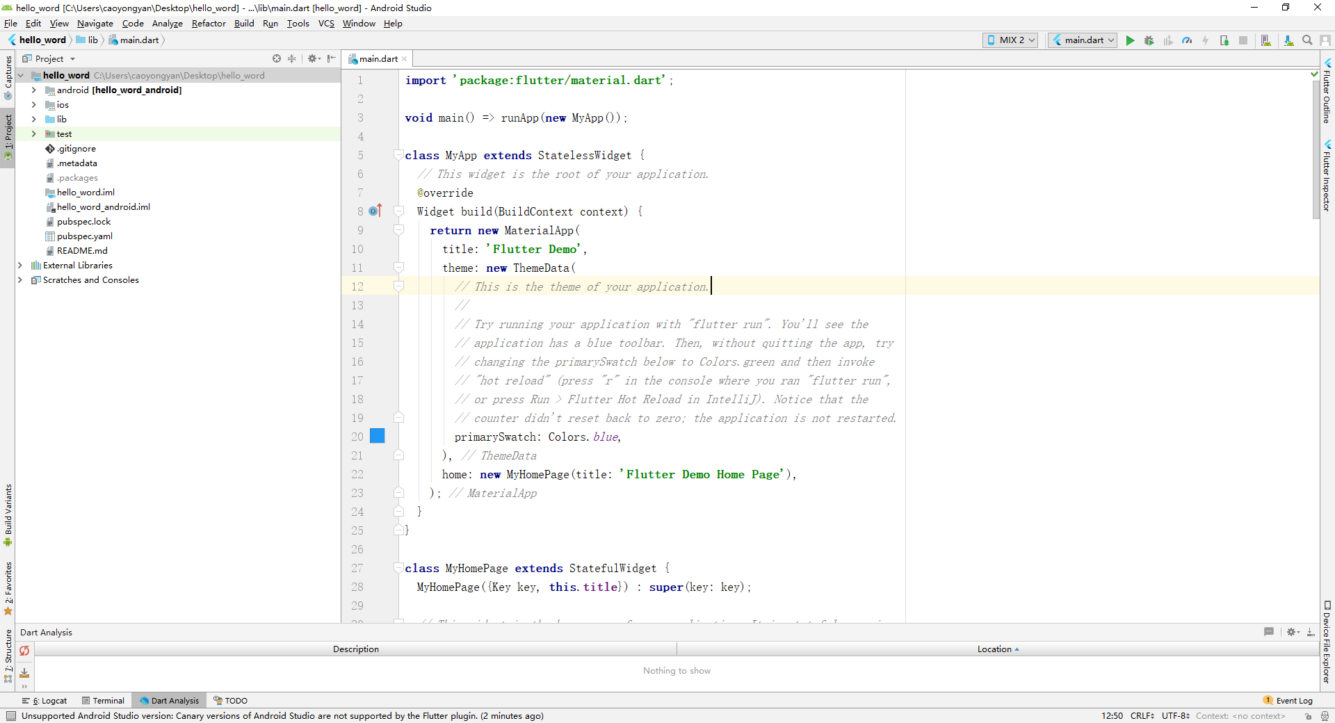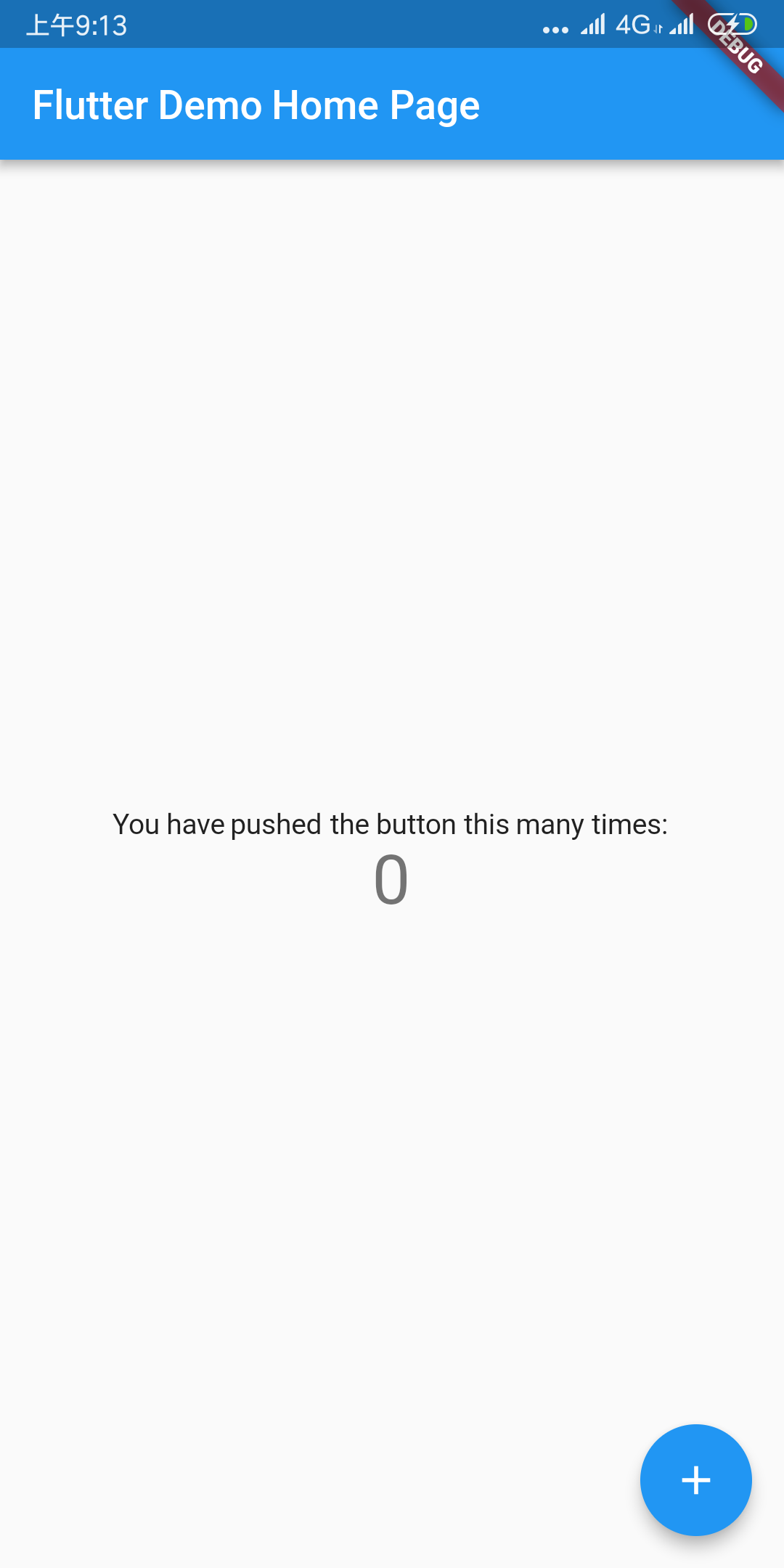 4.这个时候就需要等待AndroidStudio完成创建Flutter的项目了,创建完成后需要连接需要调试的设备,就可以运行自己的第一个Flutter程序了。