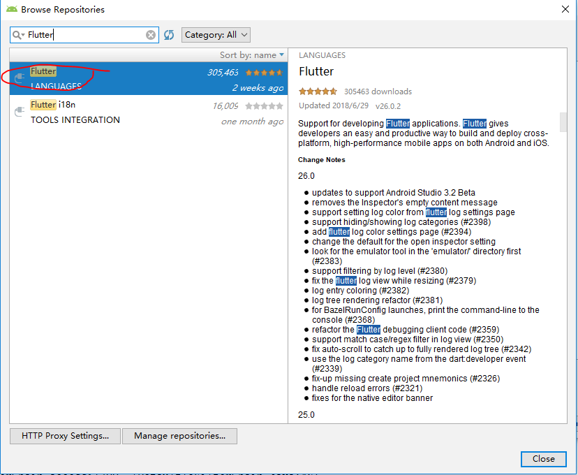 1.打开AndroidStudio--2.打开设置(setting)--3.打开plugins--4.搜索安装两个插件Dart和Flutter插件