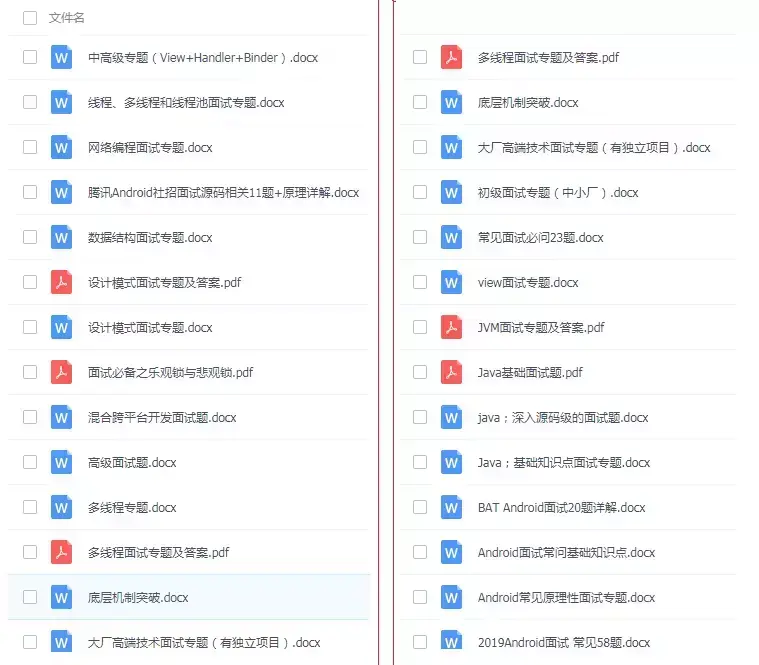 首先是一个知识清单:(对于现在的Android及移动互联网来说,我们需要掌握的技术)泛型原理丶反射原理丶Java虚拟机原理丶线程池原理丶注解原理丶注解原理丶序列化Activity知识体系(Activity的生命周期丶Activity的任务栈丶Activity的启动模式丶View源码丶Fragment内核相关丶service原理等)代码框架结构优化(数据结构丶排序算法丶设计模式)APP性能优化(用户