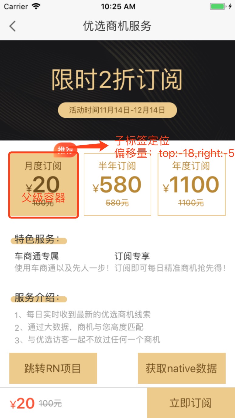 RN对absolute的官方解释就是:以父元素的边框为基准进行偏移,也就是说只能在父元素包裹的范围内偏移;