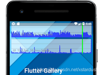上图显示了Performance Overlay模式下的帧率统计,可以看到,Flutter分开计算GPU 和UI TaskRunner。UI Task Runner被Flutter Engine用于执行Dart root isolate代码,GPU Task Runner被用于执行设备GPU的相关调用。通过对flutter engine源码分析,UI frame time是执行window.onBeginFrame所花费的总时间。GPU frame time是处理CPU命令转换为GPU命令并发送给GPU所花费的时间。