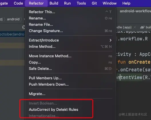 对于一些支持自动修复的格式问题,DeteKt插件支持自动格式化,同时也可以配置快捷键,一键自动格式化,如下所示: