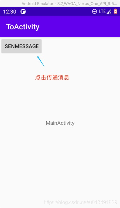 /** Called when the user taps the Send button */ fun sendMessage(view: View) { val textView = findViewById<TextView>(R.id.textView) val message = textView.text.toString() val intent = Intent(this, TwoActivity::class.java).apply { putExtra(EXTRA_MESSAGE, message) } startActivity(intent) }修改布局activity_main.xml