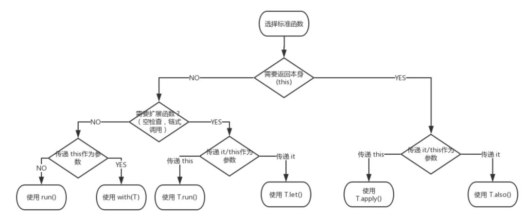 官网上提供了一张图来整理这些作用域函数的使用场景,如下所示。
