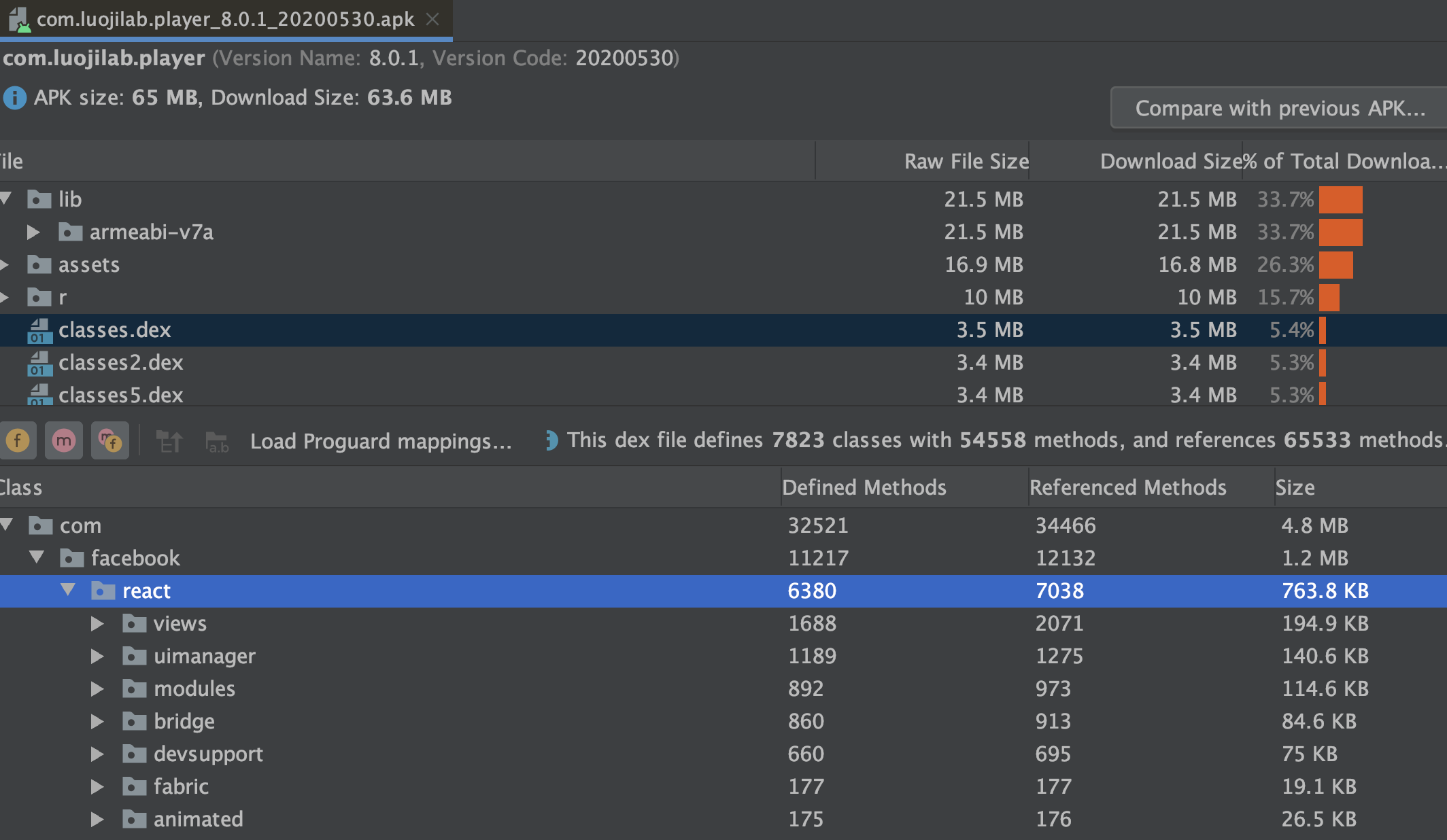 arm64-v8a的比例还是很少,虽然 Google Play 有强制arm64-v8a的要求,但是国内的普及还是不高;armeabi和armeabi-v7a的比例还是旗鼓相当。 flutter的使用比例明显上升不少,react-native还是使用最多的跨平台框架,weex意外的还有不低的比例。