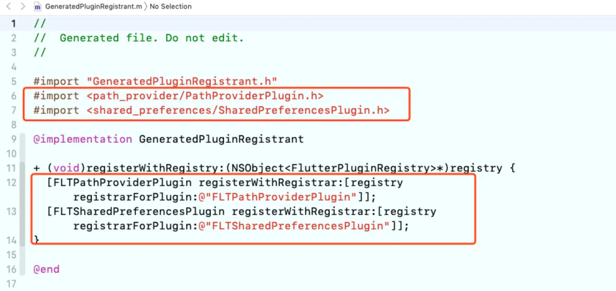 2.AppDelegate.m 引入 #include "GeneratedPluginRegistrant.h" 文件并在didFinishLaunchingWithOptions方法中调用了