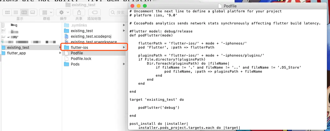 2.将flutter-ios目录拷贝到项目目录下使用Podfile引入