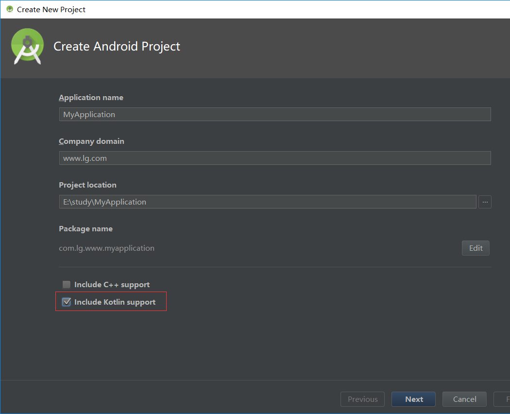 快速配置方法,创建项目时直接勾选Include Kotlin support创建Kotlin项目