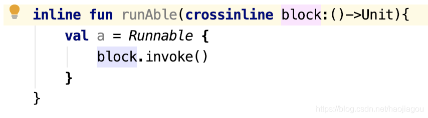 完美解决!crossinline 的作用主要是用于保证内联函数中的 Lambda 表达式中一定不会使用 return 关键字,这样也就没有冲突了。这样也有一个坏处,就是我们也无法调用 Runnable 中使用 return 进行返回了。