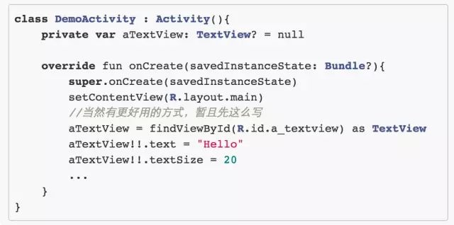 每次用 aTextView 都要加俩!,不然编译器不能确定它究竟是不是 null,于是不让你使用。。这尼玛。。。到底是为了方便还是为了麻烦??