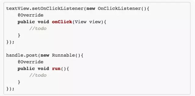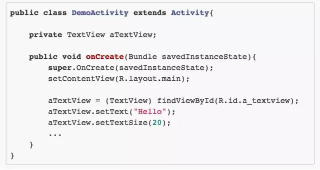 那么实际当中我们可能更常见到下面的例子,这是一段很常见的 Java 代码,在 Android 的 UI 初始化会见到: