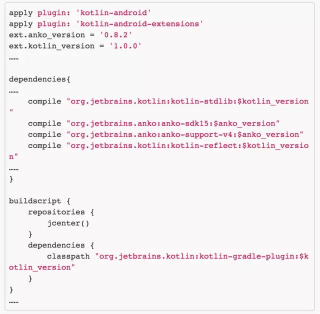 这里添加了 Kotlin 对 Android 的扩展,同时也添加了 Kotlin 的 Gradle 插件。
