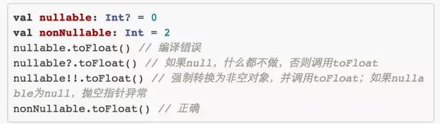 Kotlin 的空安全设计,主要是在类型后面加?表示可空,否则就不能为 null。