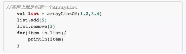 举个例子,如果你想要在 Kotlin 中使用 ArrayList,很简单,Java 的 ArrayList 你可以随意使用,这个感觉跟使用 Java 没有任何区别,请看: