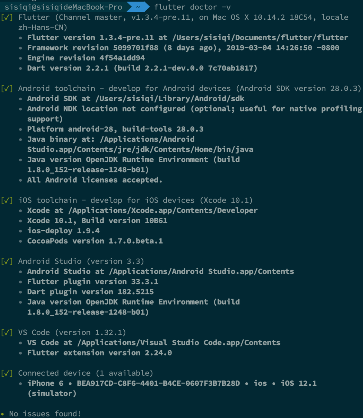 开发者需要安装好 Flutter 的环境,执行flutter doctor -v验证。