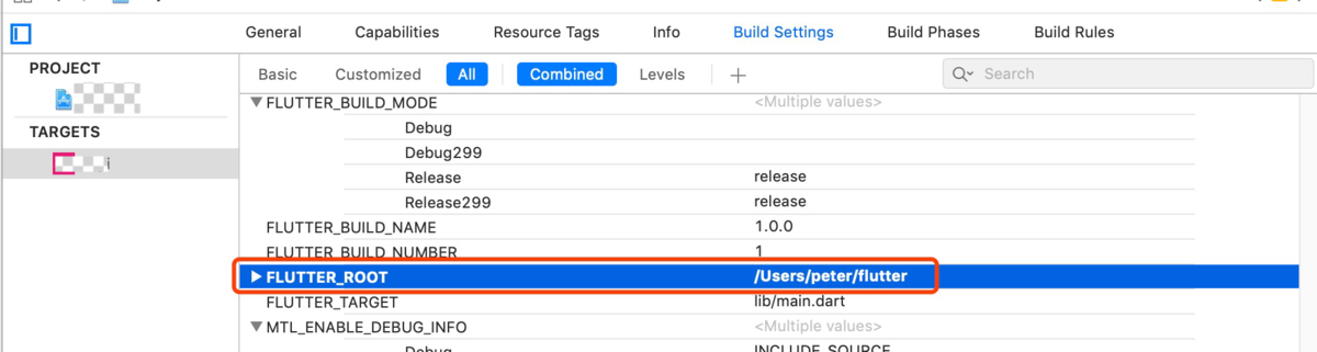 修改 TARGETS -> Build Setting -> FLUTTER_ROOT 为电脑安装的 Flutter 环境的路径即可。
