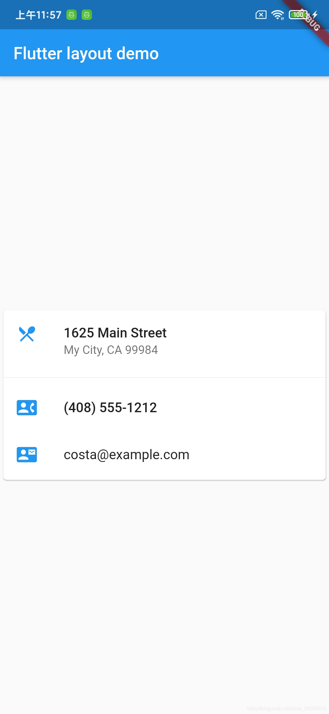 包含 3 个 ListTile 的 Card,并且通过被 SizedBox 包住来调整大小。Divider 分隔了第一个和第二个 ListTiles。