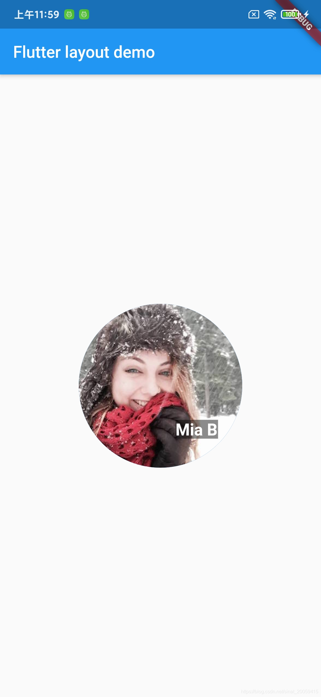 在 CircleAvatar 的上面使用 Stack 覆盖 Container(在透明的黑色背景上展示它的 Text)。Stack 使用 alignment 属性和 Alignment 让文本偏移。