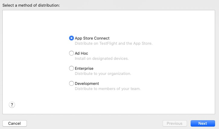 之后如下所示,就选择上传 App Store Connect 进行提交准备。