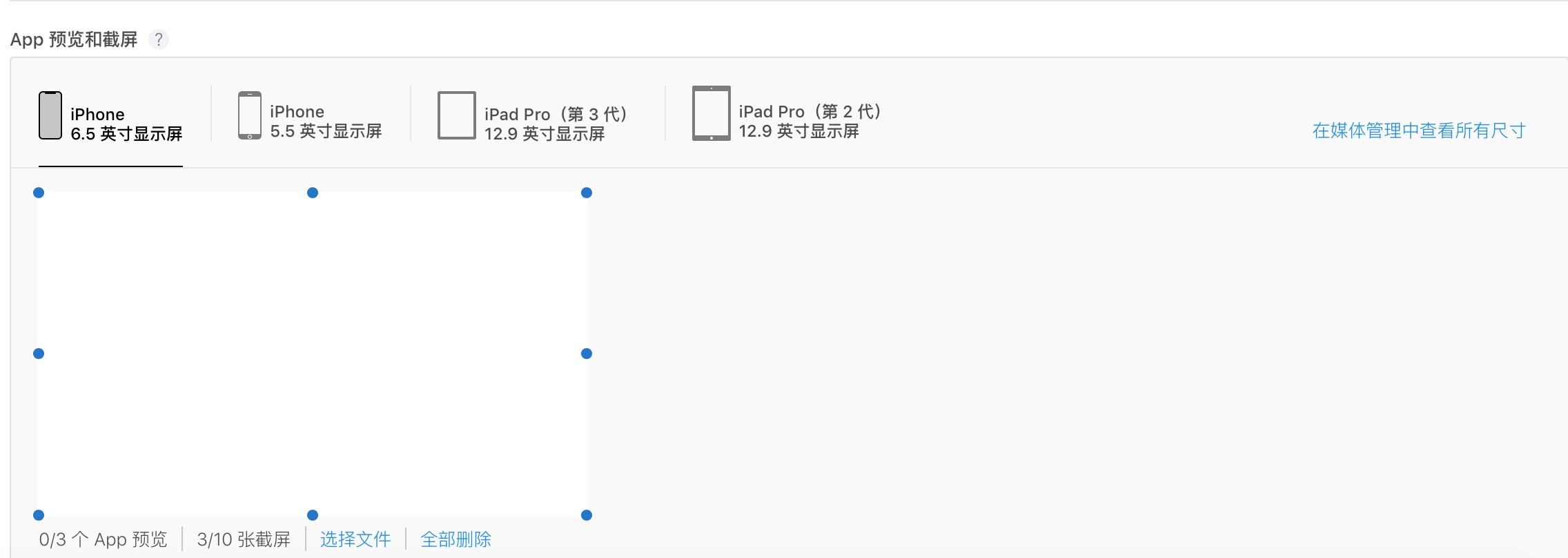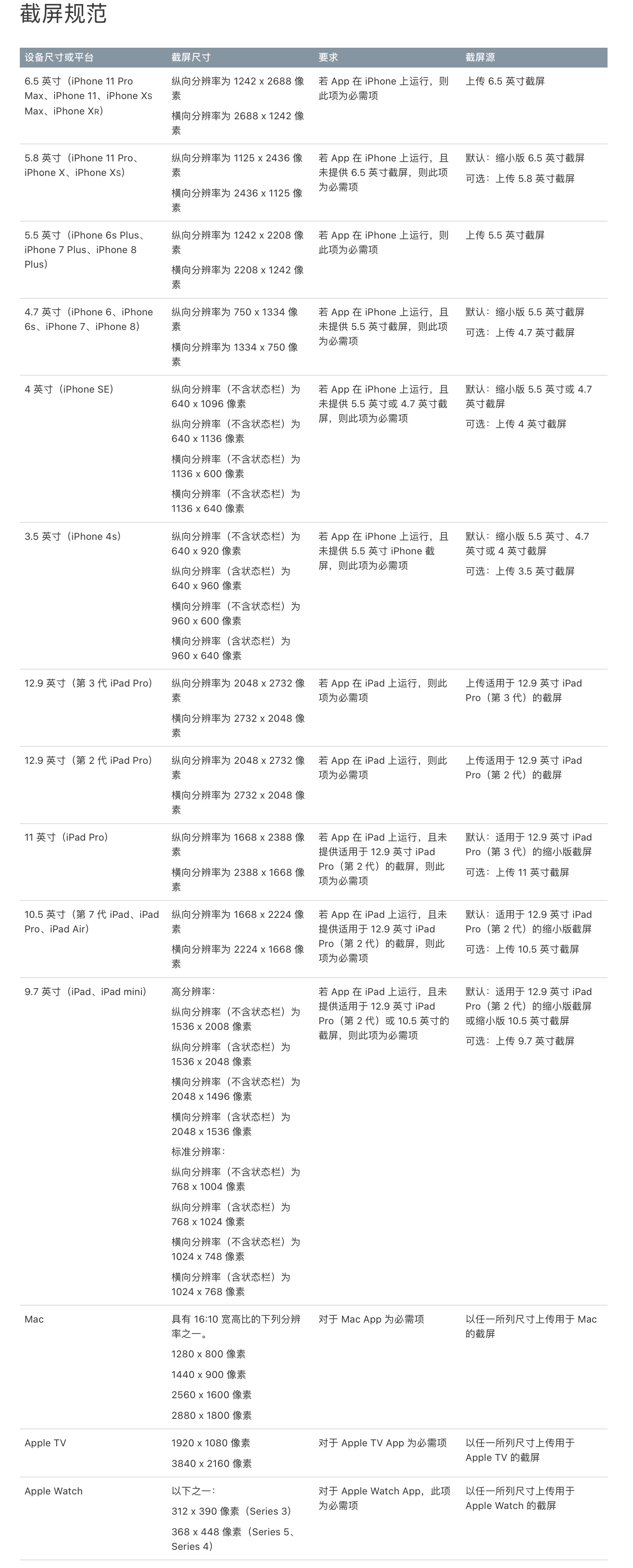这里需要注意,截图的画面不要太简单,最好能替体现应用的具体内容,不然很容易被拒绝,这里同时提供需要尺寸对应的设备型号。