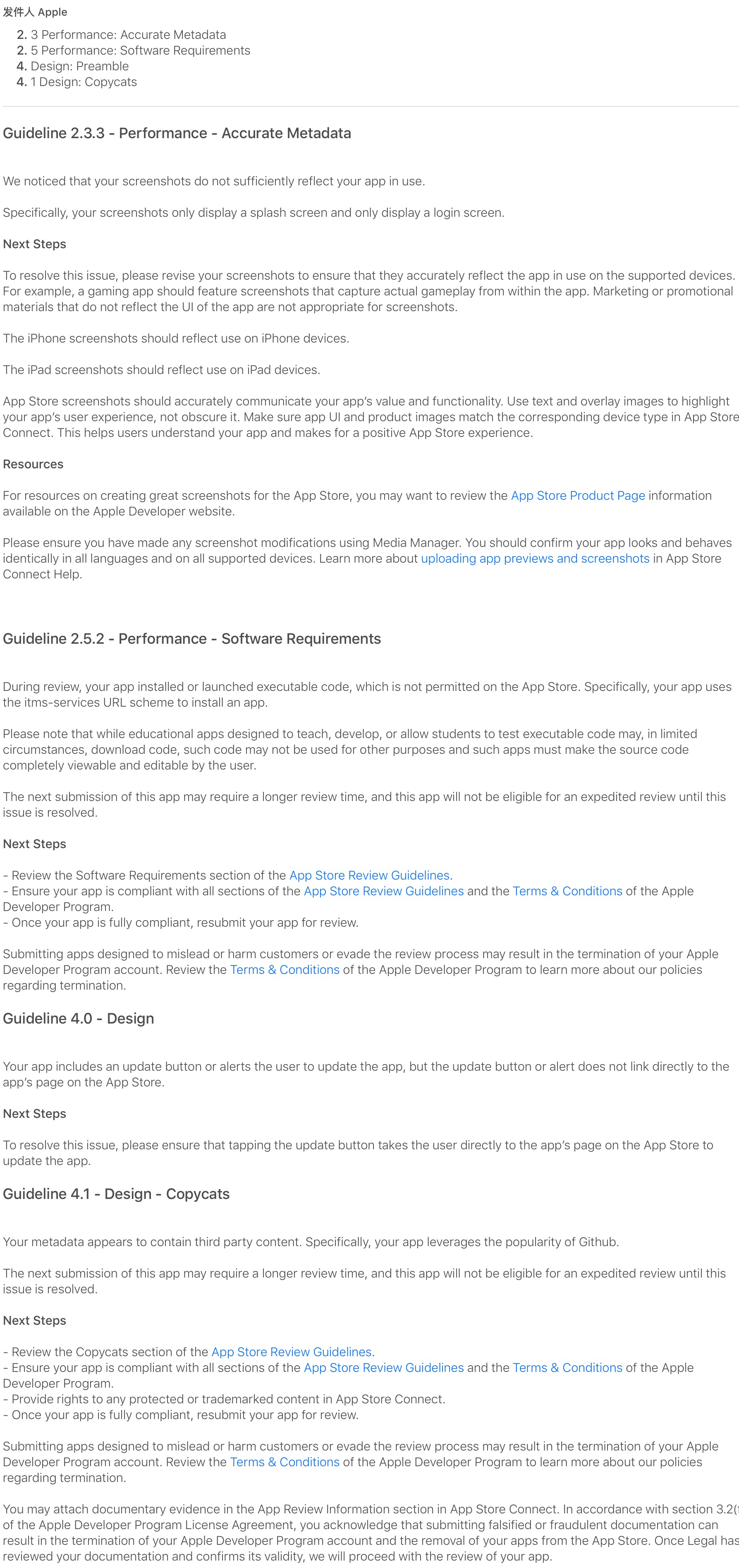 以上这些都是属于常犯的问题,更多的还请看 :https://developer.apple.com/cn/app-store/review/guidelines/