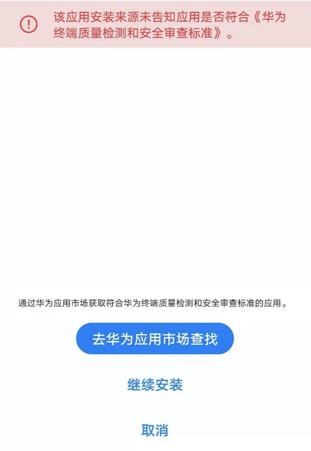 其实在 Android 上提交审核是比较简单的,因为 Android 只需要提供 Apk 下载链接就可以直接安装,所以很多厂家都在有自己服务器上直接放上 Apk 文件,但是为了更好的体验和分发,大多数情况下也会选上传到各大应用平台,比如华为上没有上架的话,会出现如下图所示问题。