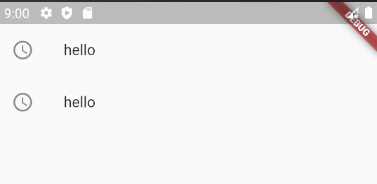 body: ListView( children:<Widget>[ ListTile( leading: Icon(Icons.access_time), title: Text('hello') ), ListTile( leading: Icon(Icons.access_time), title: Text('hello') ), ] ),