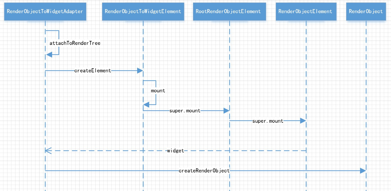 根Element:为RenderObjectToWidgetElement类型,通过调用RenderObjectToWidgetAdapter的createElement创建