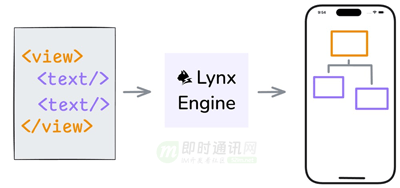 而在实现上,源代码中的标签,会在运行时被 Lynx 引擎解析,翻译成用于渲染的 Element,嵌套的 Element 会组成的一棵树,从而构建出UI界面。