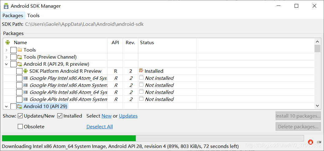 下载安装Android SDK installer_r24.4.1-windows.exe,安装你所需要的Android API
