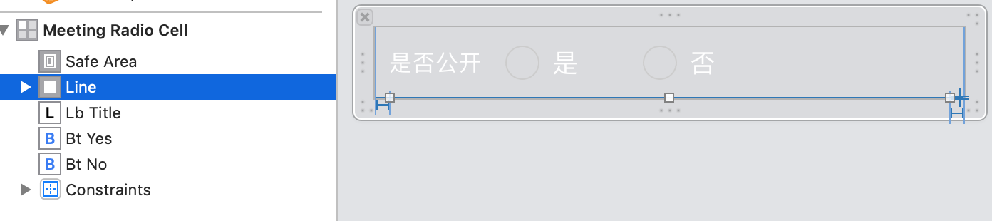 新建一个 CollectionViewCell 子类 MeetingRadioCell,本例表单中单选所用到的 cell 如下图所示,相信你已经能够很熟练地创建出来: