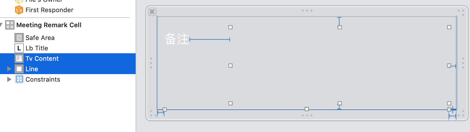 首先仍然是从创建 cell 开始。新建一个 CollectionViewCell 子类 MeetingRemarkCell。设计其 UI 如下: