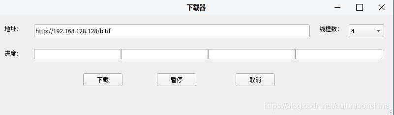 参考了代码QT中使用libCurl实现多线程分块下载单个文件,封装成QT使用的类,对于进度显示更方便,默认最多使用4个线程下载单个文件。