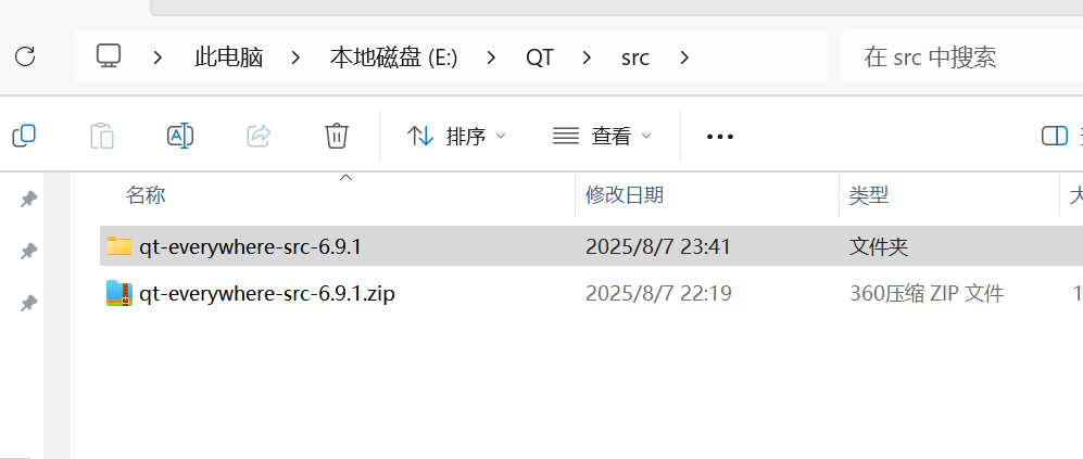 E:\QT\src\qt-everywhere-src-6.9.1),建议使用 7-Zip或 WinRAR 解压。