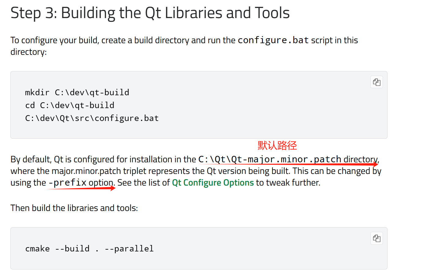 Qt is now configured for building. Just run 'cmake --build . --parallel'