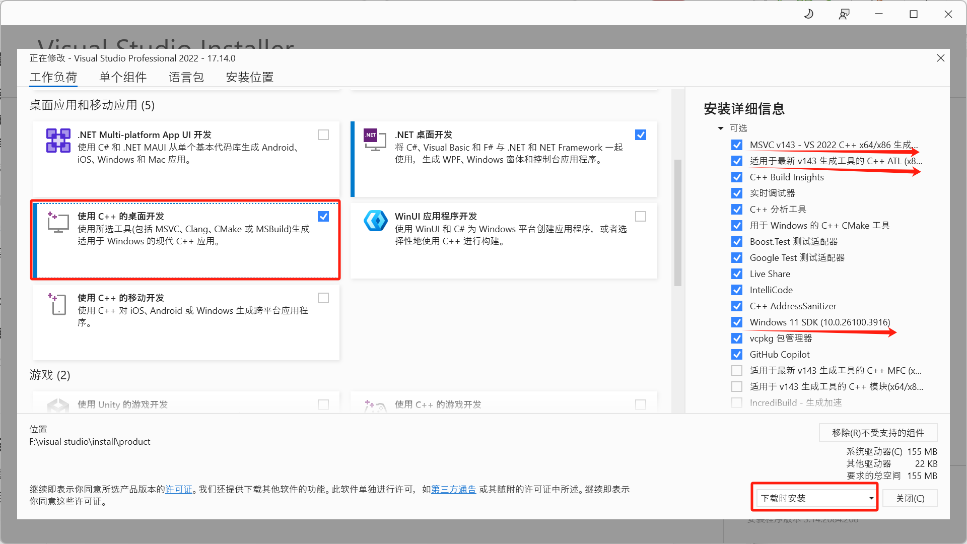 安装时勾选以下工作负载:
