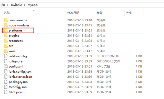 添加完平台后app目录下会多了一个 platforms 文件夹