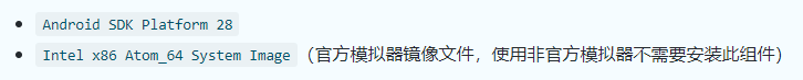 Android SDKAndroid SDK PlatformPerformance (Intel ® HAXM)(AMD 处理器看这里)Android Virtual Device