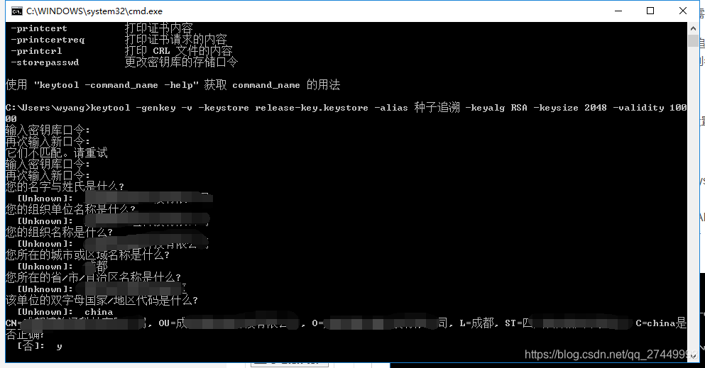 keytool -genkey -v -keystore release-key.keystore -alias 种子追溯 -keyalg RSA -keysize 2048 -validity 10000