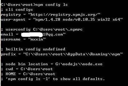 默认使用npm安装的包都保存在c:/users/root/appdata/roaming/npm,如果要修改npm默认安装目录;1、执行npm config ls,查看当前目录信息
