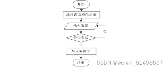 管理员可以对菜品信息等进行的修改,系统用户可以对自己权限内的信息进行修改,首先进入修改信息界面,输入修改信息数据,系统进行数据的判断验证,修改信息合法则修改成功,信息更新至数据库,信息不合法则修改失败,重新输入。修改信息流程图如图3-8所示。