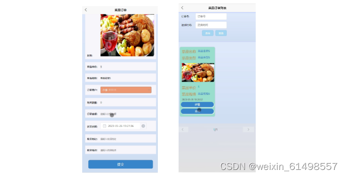 图5-6下单购买界面图 图5-7菜品订单界面图