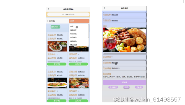 图5-4菜品展示列表界面图 图5-5详情界面图
