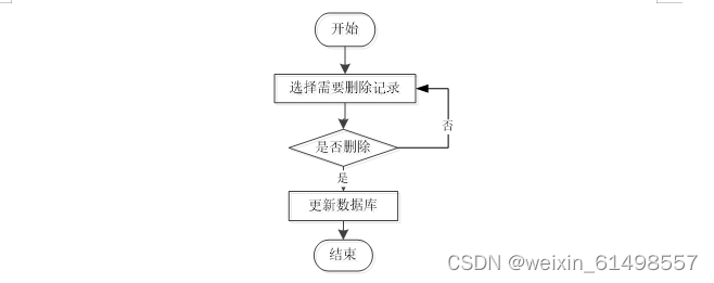 管理员可以对菜品信息等进行信息的删除,对要删除的信息进行选中后,点击删除按钮,系统会询问是否确定,若点击确定,则系统会删除掉选中的信息,并在数据库内对信息进行删除,删除信息流程图如图3-9所示。