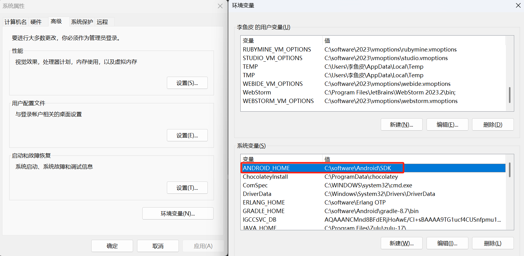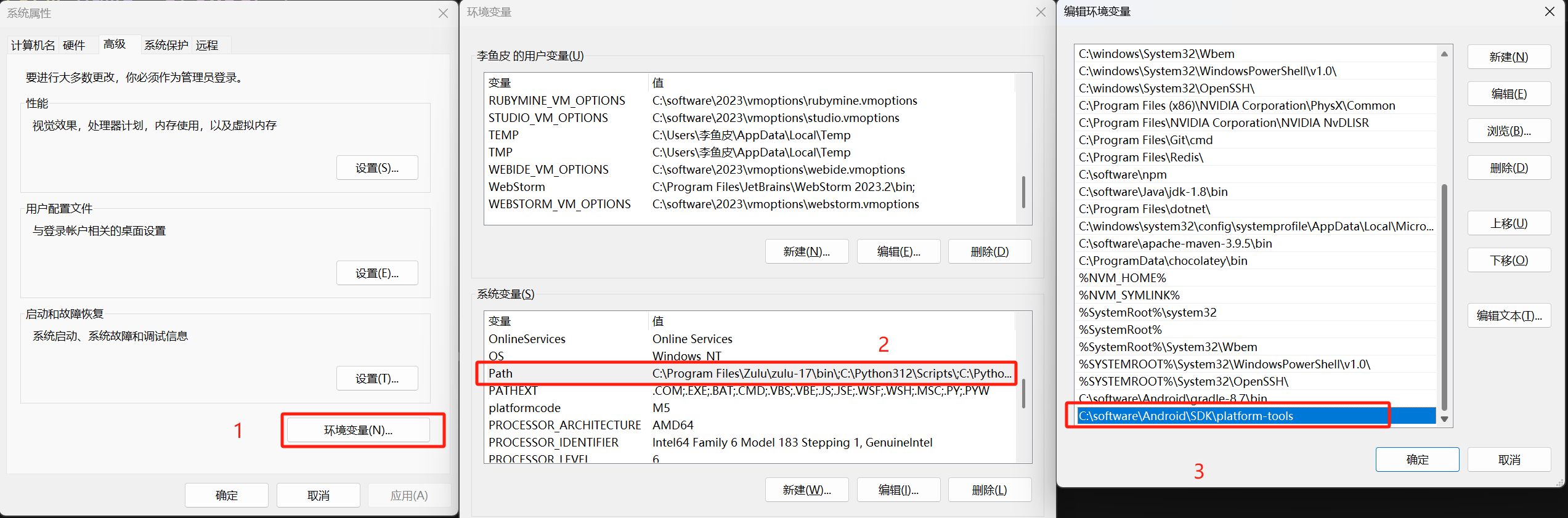 还要配置 platform-tools 到 Path 中,里面有一些命令行工具: