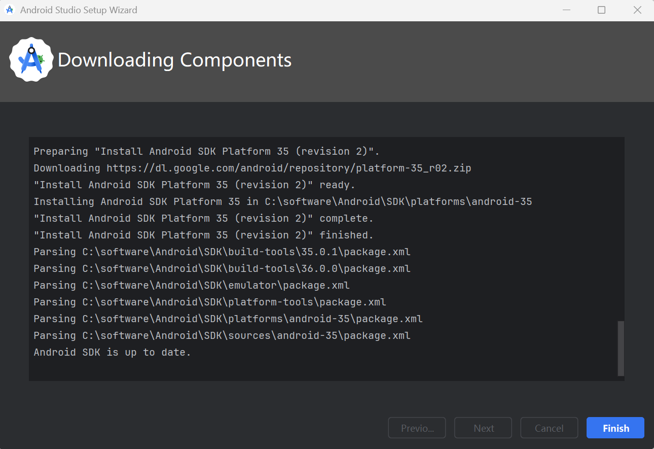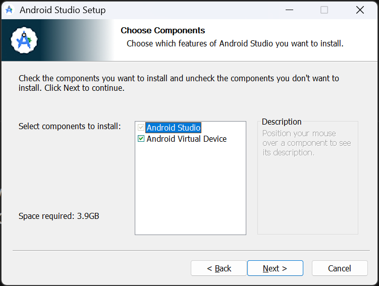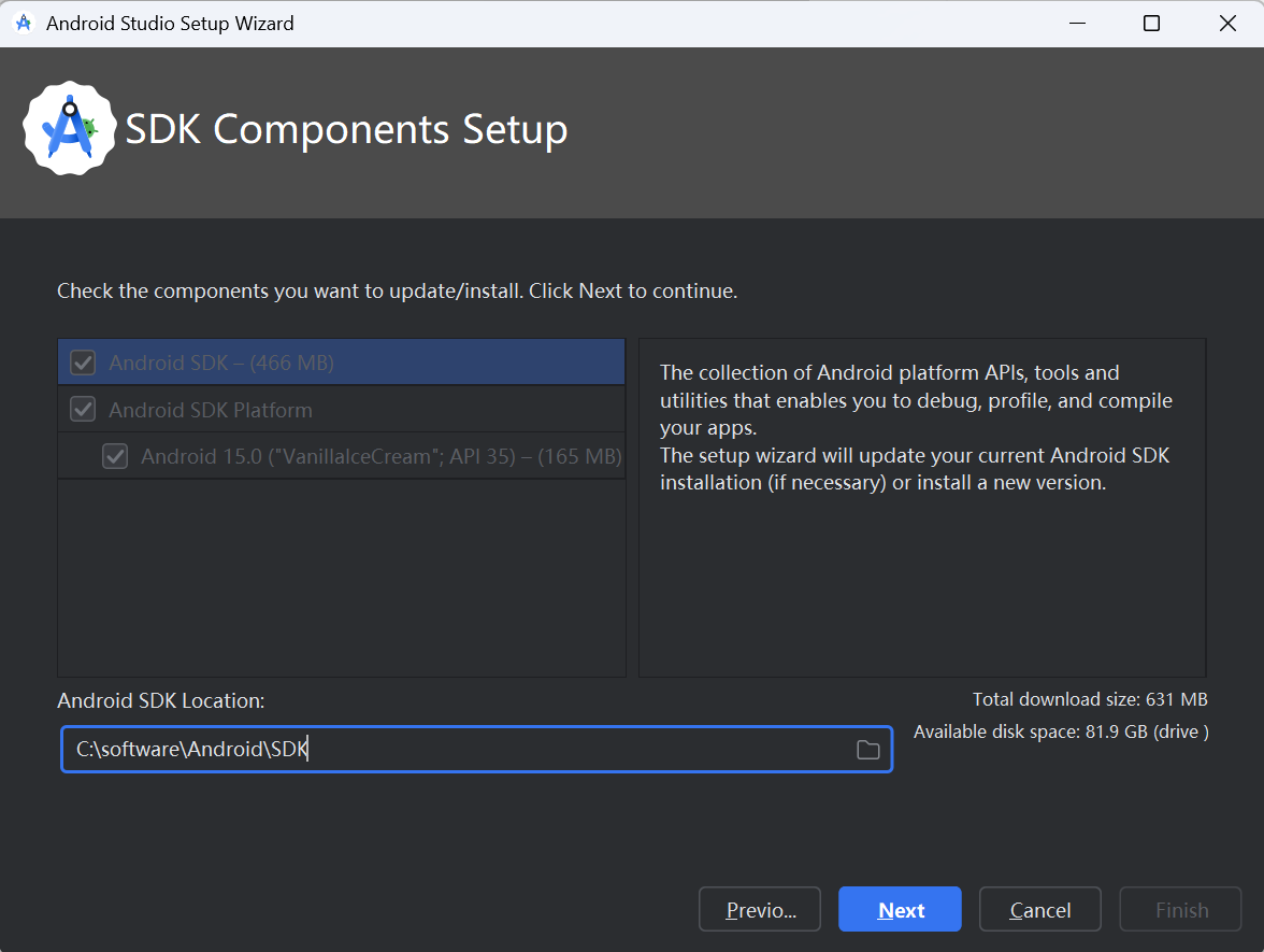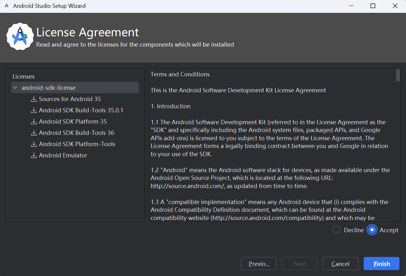 接下来无脑安装即可,会自动安装各种 Android 开发常用的工具、还有安卓设备模拟器: