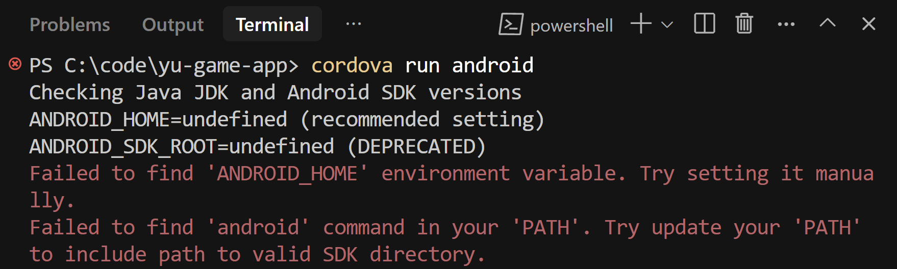 执行 cordova run 报错命令执行失败,可能是因为没有配置 cmdline-tools 到环境变量 Path 中。