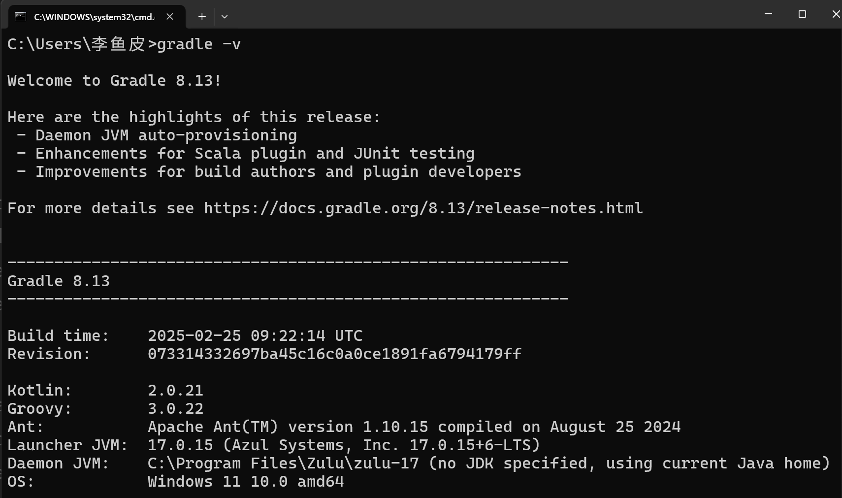 根据上面的版本号,Gradle 必须是 8.13,直接到